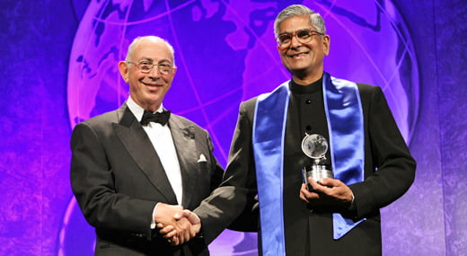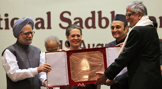 Mr. DR Mehta receiving the Rajiv Gandhi National Sadbhavana Award from Prime Minister Mr. Manmohan Singh and Ms. Sonia Gandhi