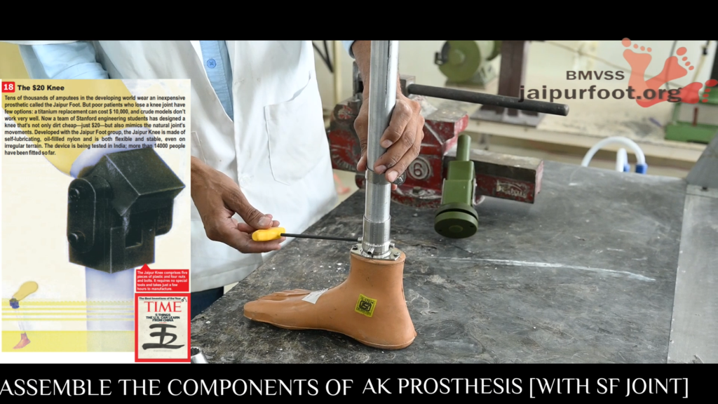 BMVSS uses the famous Jaipur Foot. It is the parent body for Jaipur Foot. Jaipur Foot is technically distinct from other foot / limb technologies. Jaipur Foot was developed at the S.M.S. Medical College Hospital, Jaipur in 1968 by a group of eminent orthopedic surgeons and highly innovative craftsmen. The subsequent developments in the technology, since 1975, were under aegis of BMVSS. Like all lower limb prosthesis, the Jaipur Foot / limb Technology has three vital components namely –