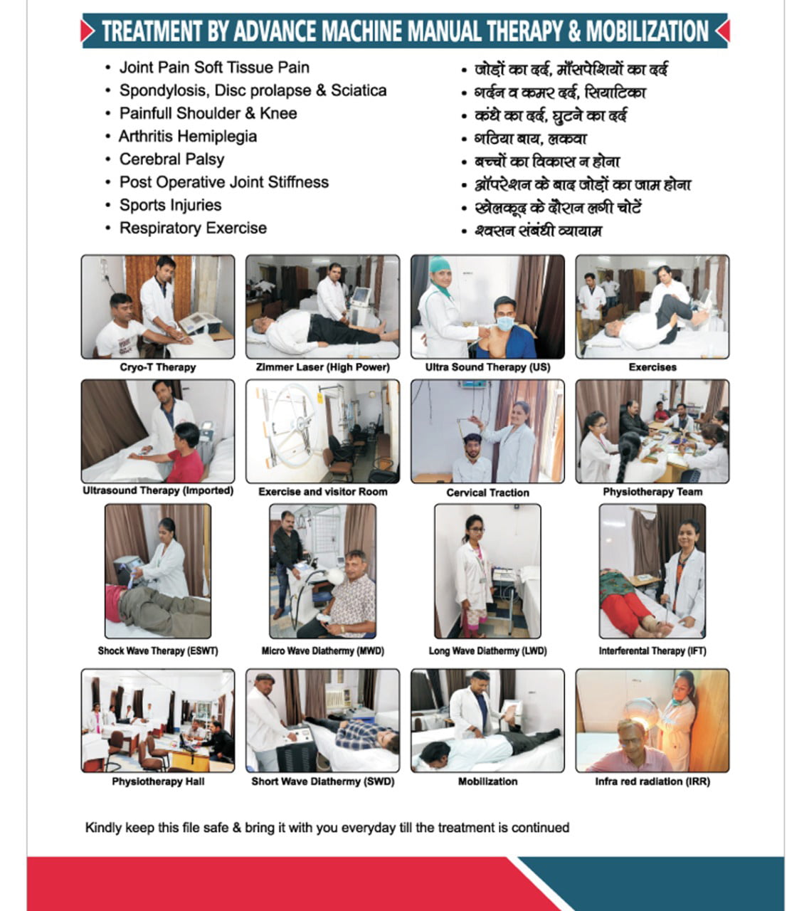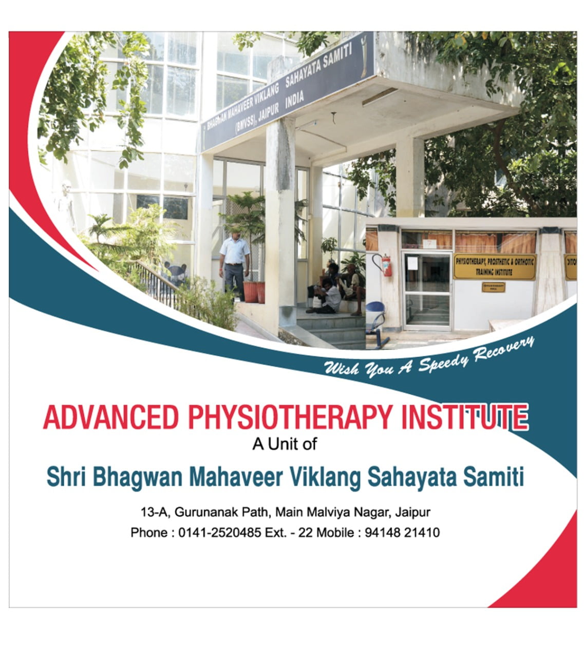 BMVSS has a well-equipped physiotherapy centre at its Jaipur headquarters with modern equipment and highly trained staff. The centre has state-of-the-art machines to improve strength and movement and reduce spasm and swelling.